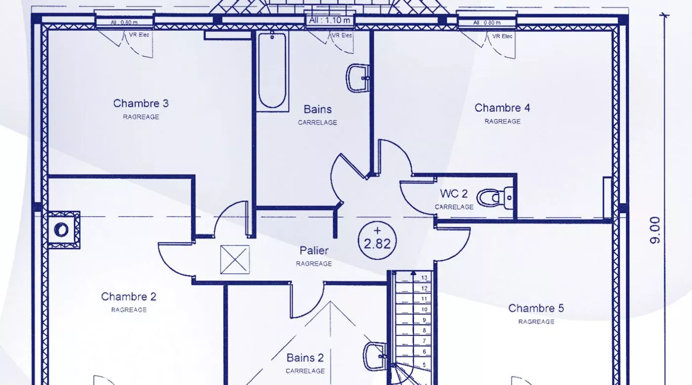 Le modèle Castellum est une grande maison familiale de 179 m2 de style classique, dont l’architecture est néanmoins originale. Ses décrochés en façade permettent de ménager un porche couvert à l’avant, et une agréable loggia à l’arrière, qui lui donnent une certaine élégance et font sa singularité.Le plan de cette maison est fonctionnel et privilégie le confort de ses habitants. Au rez-de-chaussée, une véritable entrée dessert de vastes espaces à vivre : un séjour en L de xx m2, une grande cuisine de plus de 14 m2 et son cellier, et une première chambre dotée de sa salle d’eau privative. A l’étage, 4 chambres spacieuses indépendantes et deux salles de bains avec baignoire, pour le confort de tous les habitants.