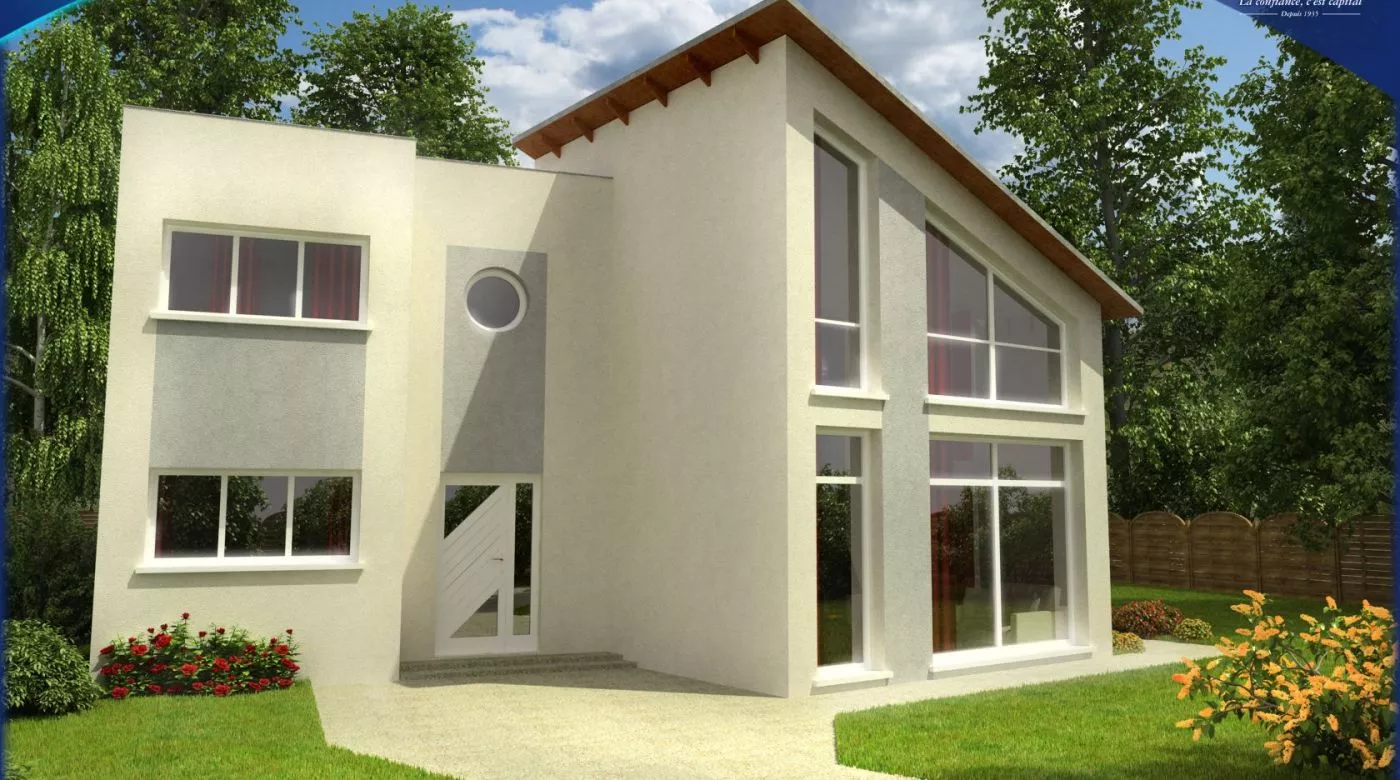 Le modèle Omega est une grande maison familiale R+1 de style contemporain de 175 m2. Très spacieuse et très lumineuse, cette maison présente néanmoins des volumes compacts (emprise au sol de 14 x12 m), qui accentuent son esthétique moderne, mais ses lignes irrégulières et son toit mi-plat mi-en pente lui donnent un cachet certain. Cette architecture permet en outre de ménager de très nombreuses ouvertures, et de bénéficier de larges apports lumineux.Les plans de cette maison privilégient eux-aussi le confort et la lumière, avec un plan original : au rez-de-chaussée, d’une surface de 92 m2, comporte une entrée ouvrant sur une très grande cuisine de 11 m2 et son cellier, un séjour de 47 m2 dont une partie bénéficie d’une hauteur sous plafond exceptionnelle et d’une verrière en façade, et une première chambre, isolée des pièces de vie commune, avec sa salle de bain privative avec baignoire.et une seconde salle de bain avec baignoire. À l’étage, 3 autres chambres, dont une de presque 20 m2, et une seconde salle de bain avec baignoire. Un pallier de 18 m2 et une mezzanine de 15 m2 constituent des lieux de vie complémentaires, qui permettent de profiter de l’espace, de la lumière (salle de jeu, bibliothèque, bureau, jardin d’hiver, etc.).
